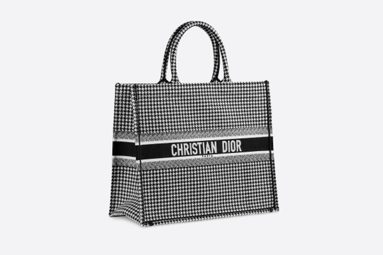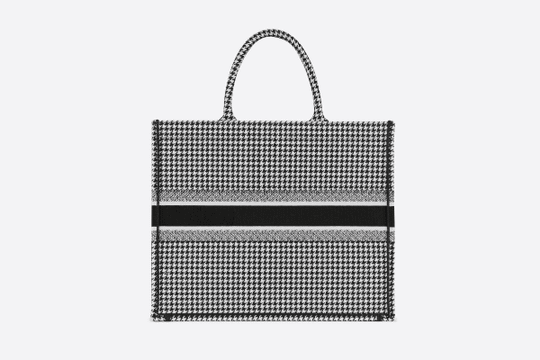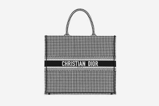 Introduced by Maria Grazia Chiuri, Creative Director for Christian Dior, the Dior Book Tote has become a staple of the Dior aesthetic. Designed to hold all the daily essentials, the style has been fully embroidered with a black-and-white houndstooth motif. Adorned with the ‘CHRISTIAN DIOR’ signature on the front, the bag exemplifies the House’s signature savoir-faire and may be carried by hand or worn over the shoulder.