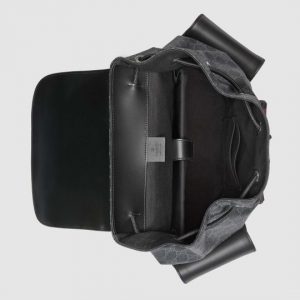 - Black/grey soft GG Supreme, crafted from a coated microfiber fabric, with black leather trim