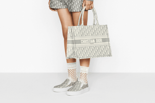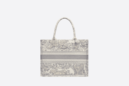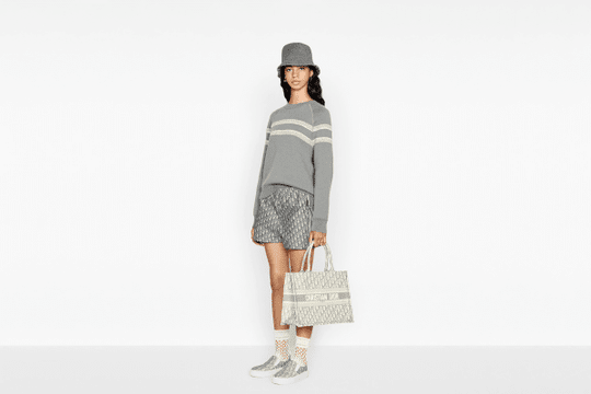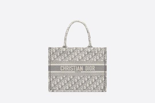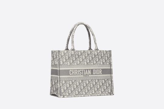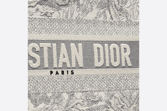 The Dior Book Tote, an original style introduced by Creative Director Maria Grazia Chiuri, has become a staple of the Dior aesthetic. Ideally designed to carry all your daily essentials, the small shape is fully embroidered with a gray Dior Oblique pattern and the ‘Christian Dior’ signature on the front. This carryall is a perfect example of the Dior savoir-faire and it may be worn with other small accessories or the Mitzah scarf for a complete look.