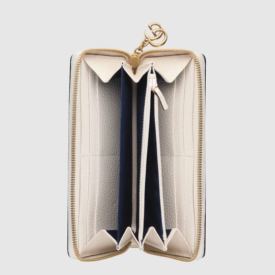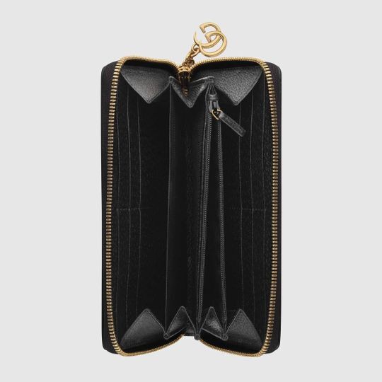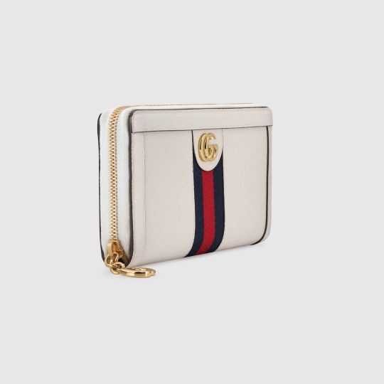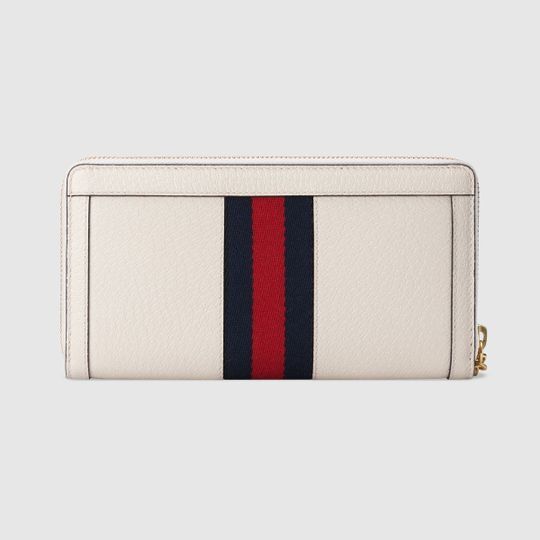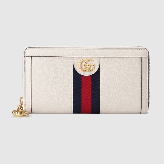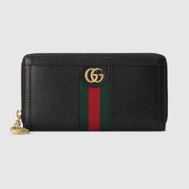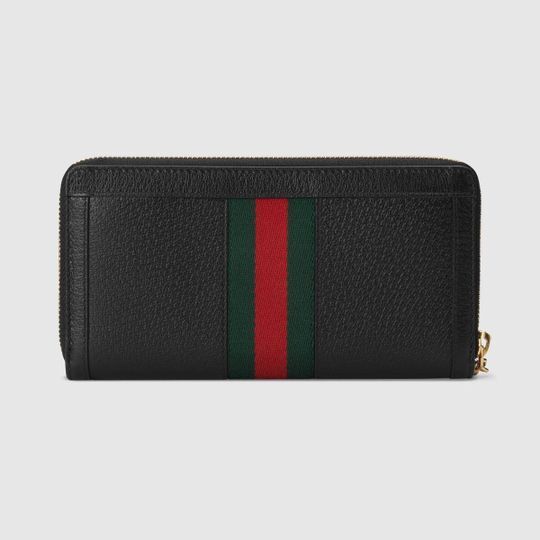 The Ophidia universe combines retro inspired details with emblematic House codes, referenced atop this wallet by the pairing of the classic green and red House Web with the Double G?an archival detail from the ’70s. Crafted from textured black leather, this accessory is completed by a zip around closure.