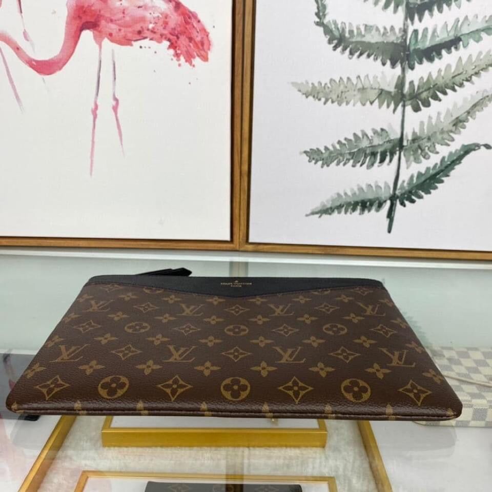 The Daily Pouch contrasts iconic Monogram canvas with subtly grained cowhide leather for a stylish, modern look. Spacious and versatile, it holds all everyday essentials and can be carried on its own or slipped inside a larger bag.